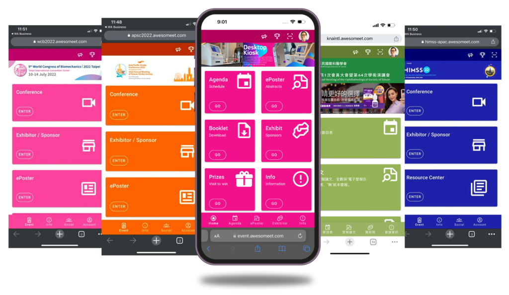 Integrated mobile web app with no download needed for all types of events, conference, congress, trade show whether is physical, virtual and hybrid audiences Robust & highly customizable embed within the event platform for conferences and trade show. Feature included as below;